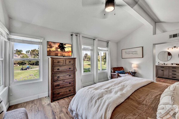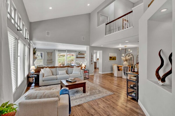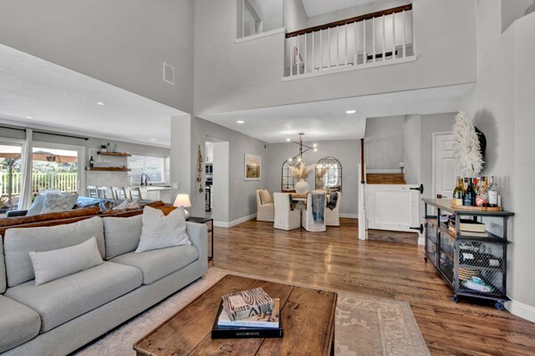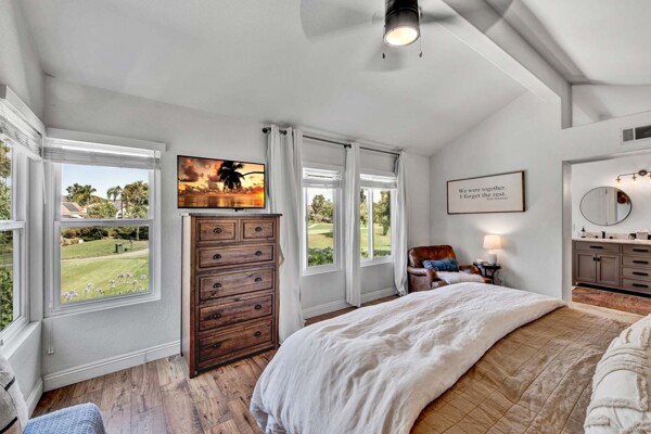 Highly upgraded and gorgeous Tijeras Creek Golf Course view home. This home has stunning views of the 2nd hole of the golf course from the front door, and is the most desirable floor plan in the Tierra Linda tract. Step into the expansive living room, with vaulted ceilings, Milgard lifetime warranty dual paned windows, new blinds throughout home, extra canned lighting, open floor plan with spectacular views from front door to the golf course. Custom paint and gorgeous Mohawk Luxury Vinyl flooring throughout entire home. Remodeled kitchen features beautiful white quartz counters, shaker cabinets and stainless steel appliances. The family room has a beautiful fireplace, and canned lighting. Head out to the expansive enclosed back patio with panoramic golf views. The downstairs bath has custom vanity, marble counters, upgraded mirror and lighting. Head upstairs to the added loft upstairs. It is is perfect for a home office, or study area for kids. Huge master bedroom with custom paint, and panoramic golf views. The master bath has dual sinks, custom cabinetry and marble counters, and a large soaking tub. Large walk-in master closet with custom shelving. Two other good sized rooms with mirrored wardrobe and custom closet shelving. The bath at the top of the stairs has a shower/tub combo with new custom cabinets and white marble counters. Large two car garage with epoxied flooring and 2 car driveway. 2024 All Electric Trane 4 Ton P Series Air Handler and X Series HP Condenser with the Nest for heating and Air. Whole House soft water filter. 2024, 50 gal water heater. Home fully Re-piped in 2018. This home is nestled within the vibrant Rancho Santa Margarita voted safest city in California in 2023. Residents can take advantage of the delightful community pool, and nearby hiking/biking trails, for an outdoor friendly lifestyle. Golf enthusiasts will appreciate having views of Tijeras Creek golf course. City amenities, city events, beautiful parks, swimming pools, beach club with a stunning lagoon with BBQ and picnic area. Lake walk, playgrounds, sports fields, tennis, pickleball, basketball, and volleyball. Other amenities include Dog Park, Skate Park, and hiking and biking trails steps away. Distinguished Schools, Low Taxes, No Mello Roos.