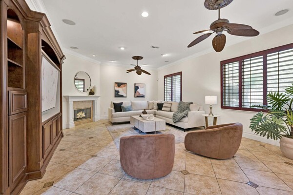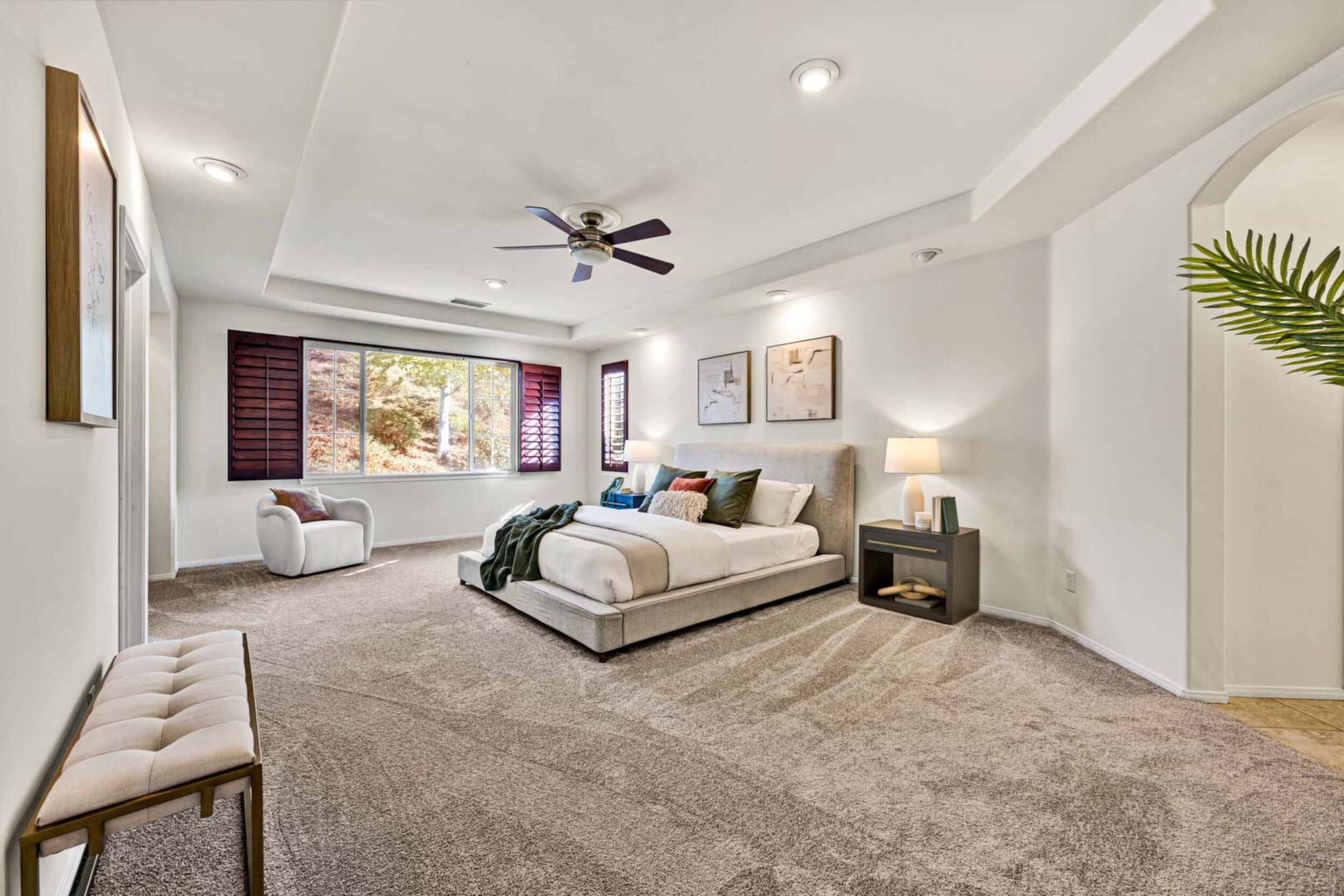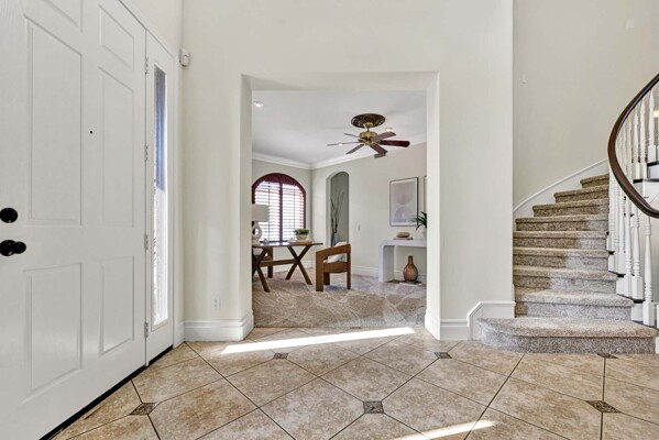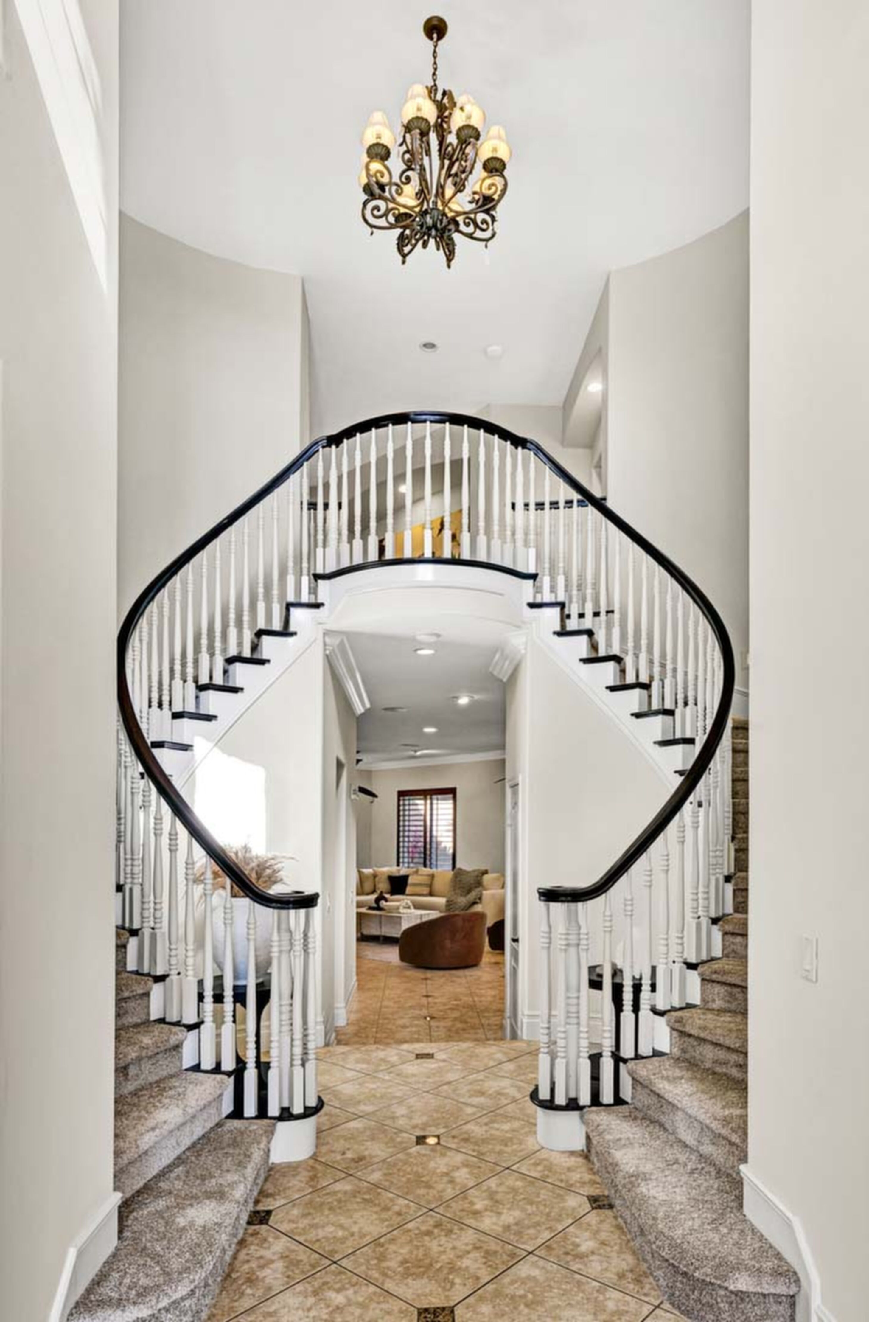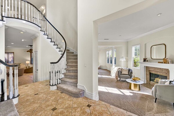 Welcome to this stunning and spacious home, where a grand two-story foyer and dramatic semi-circular staircase make a beautiful first impression. With 5 bedrooms and 3.5 baths, this residence offers incredible flexibility-including a main-level office that can serve as the fifth bedroom with huge walk-in closet. Enjoy elegant entertaining in the formal living room with fireplace and the separate dining room for your holiday dinners, or keep things casual in the oversized family room, also featuring a cozy fireplace. The huge kitchen is designed for both cooking and gathering, complete with a breakfast bar/island & a casual dining area just steps away from the family room with views of the peaceful Zen like backyard. There is also a cute powder room and access to the garage with built-in's. Second level has a substantial landing to display art and family pictures, the spacious primary suite with double doors offers a peaceful escape with two large walk-in closets, dual vanities, vast walk-in shower and a generous soaking tub. One of the secondary en-suite bedrooms includes an adorable bonus area behind French doors-perfect as a study nook, gaming/reading room, or vanity space. 2 other good size bedrooms along with a full bath with dual vanities! The convenient second-level laundry room features a sink and ample cabinetry. The third-level bonus room is a dream space-ideal for a gym, teen retreat, playroom, hobby room, or anything your lifestyle needs. The space also has a cute hideaway for kids that want their own little space. So fun! Step outside to a gorgeous private backyard designed for year-round enjoyment, complete with outdoor fireplace, BBQ bar, fire pit area, and fruit trees. Additional upgrades include tall baseboards, crown molding, recessed LED lighting, ceiling fans, fresh paint, new carpet, H2O softener & dual pre-filters, dual amplifiers (1 for exterior & 1 for interior surround sound) surround sound on 3rd floor & in primary bath, generator back up ready (transfer switches installed), automatic temperature controlled attic exhaust fan to eliminate attic heat, automatic exhaust fan in garage, new 75 gal H2O heater w/expansion tank, hose bib in garage hooked up to water softener to wash your car, new exterior landscape, lighting & irrigation, 2nd floor A/C is 5 years old and 3rd floor is 3 years, insulated garage door. This home truly has it all-style, space, & thoughtfully designed amenities throughout. Ready to welcome its next owners!