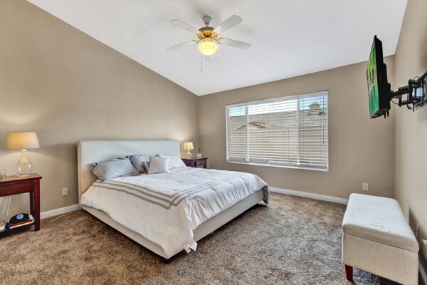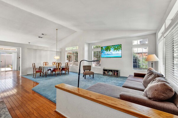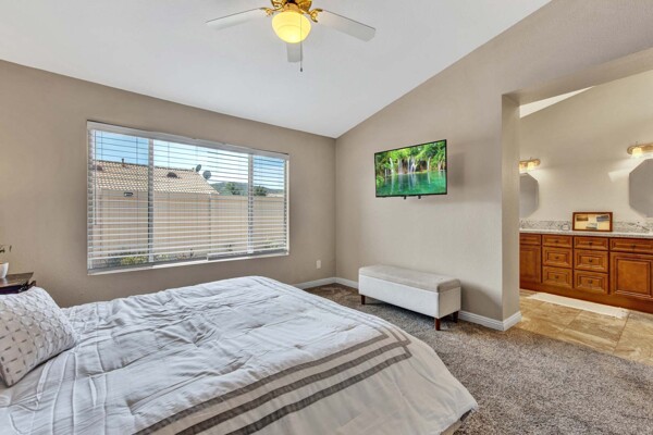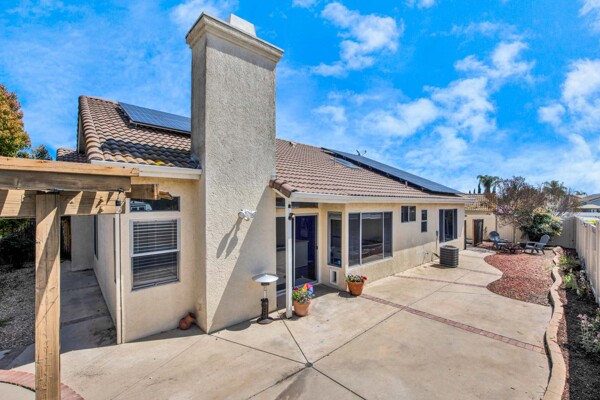 Highly Desirable Single Story Ranch Home located in Highly Desirable West Murrieta, in a LOW TAX area and NO HOA. You will be greeted with beautifully landscaped front yard, and relaxing front porch. 3 Car Garage with wide concrete driveway with brick inlays, RV Access Parking behind a gate. Enter through the covered Porch through the double front doors leading to an open living room and formal dining room walnut toned wood flooring, with Carpet inlays, vaulted ceilings, refreshed painting, and lots of windows making it light and bright. The Open kitchen with Walnut toned Cabinets, with Quartz Counters. Black appliances, with Refrigerator included. Lots of cabinets and countertop space. Opens to family breakfast nook,and Cozy Family room with fireplace, and ceiling Fan. Large Master bedroom has vaulted ceilings, ceiling fan, and upgraded carpeting. The updated master bathroom features tile flooring, and Shower with glass walk-in, Upgraded Vanity with dual sinks with Mohen fixtures, Granite Counters, Walnut toned Cabinets, and Large Walk-in Closet. 2 other good sized rooms with upgraded carpet. 2nd bath with shower Bath combo. Separate Laundry Room with Shelving. Private Backyard is low maintenance with concrete patio and raised seating area with beautiful wooden lattice cover, with low maintenance vinyl fencing, and waterwise drip system. West facing to offers gorgeous views of the Santa Rosa Plateau and highlighting beautiful evening sunsets. This home also has 44 Sun Run SOLAR PANELS providing low-cost energy and efficiency. Solar Lease is $143.67 per month. Modernized Electrical throughout. Don't miss this well Loved Property with only 2 owners. Located within walking distance to award winning Murrieta Schools, The Elementary just finished Huge Remodel this year. Also Walking distance to Downtown Murrieta businesses, Driving Range, and Restaurants. Tot lot playground in Neighborhood. Easy freeway Access.