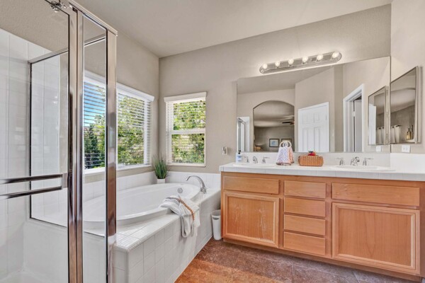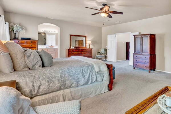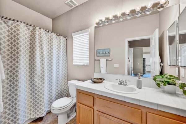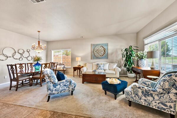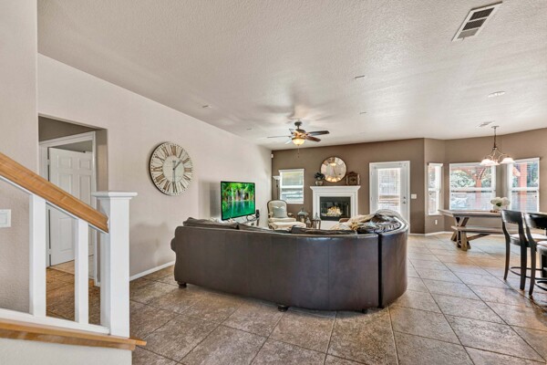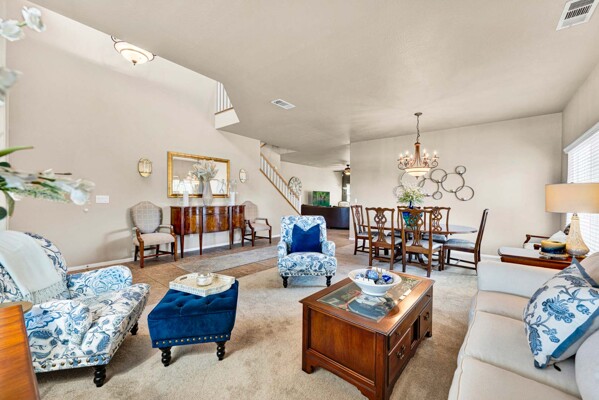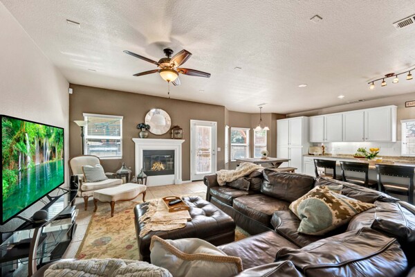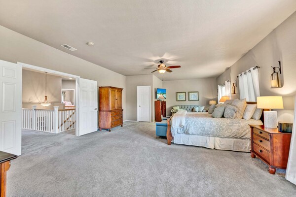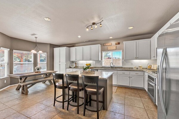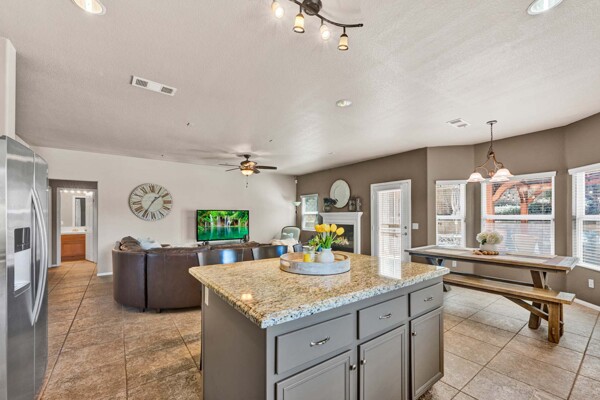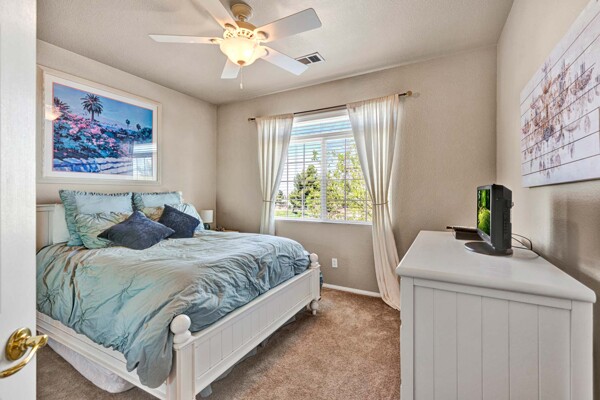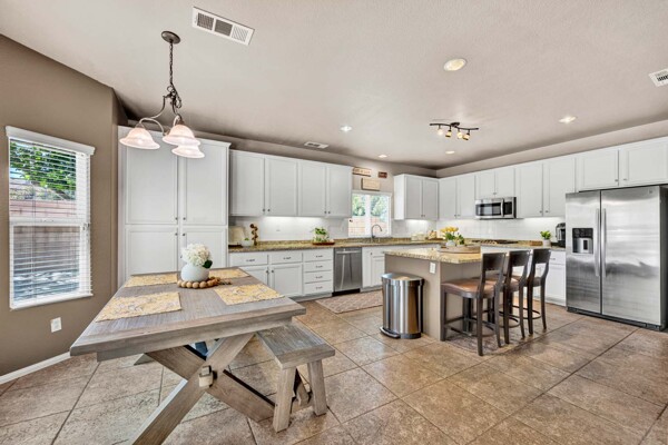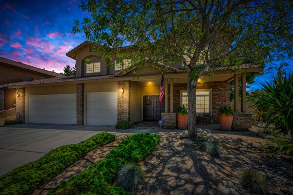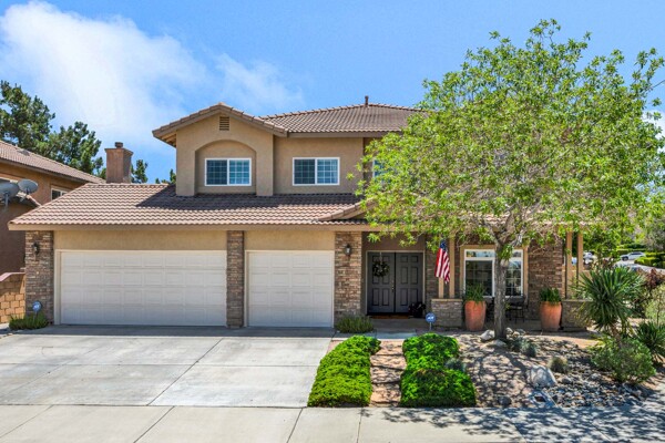 Luxurious 6-Bed, 3-Bath Golf Course Retreat in Rancho Vista. Discover your dream home in West Palmdales prestigious Rancho Vista, directly across from the stunning Rancho Vista golf course! This expansive 3, 219 sq. ft. gem, built in 2004 on a 6, 139 sq. ft. lot, blends modern elegance with serene living, just over an hour from vibrant Los Angeles. Step through the grand double-door entry into an open-concept haven, where a remodeled gourmet kitchen dazzles with granite countertops, stainless steel appliances, and a large center island that flows seamlessly into a cozy family room with a fireplace. Relax in the low-maintenance, drought-friendly backyard, complete with an above-ground spa and mature trees, or savor meals in the charming breakfast nook with peaceful views. Perfect for families or entertaining, the home features a convenient downstairs bedroom and full bathroom, plus a laundry room with front-loading washer/dryer, sink, and ample cabinetry. Upstairs, the expansive primary suite boasts a walk-in closet, dual-sink vanity, oval soaking tub, and private toilet area, while four additional bedrooms share a well-appointed guest bathroom with separate vanity and shower. Two bedrooms offer breathtaking golf course views, perfect for morning sunrises or evening stargazing. With a three-car garage, drought-friendly front yard, and prime location, this home is a rare find for golf enthusiasts and those seeking space, style, and sustainability. Dont miss your chance to own this Palmdale masterpieceschedule a tour today and experience luxury living with unmatched views!