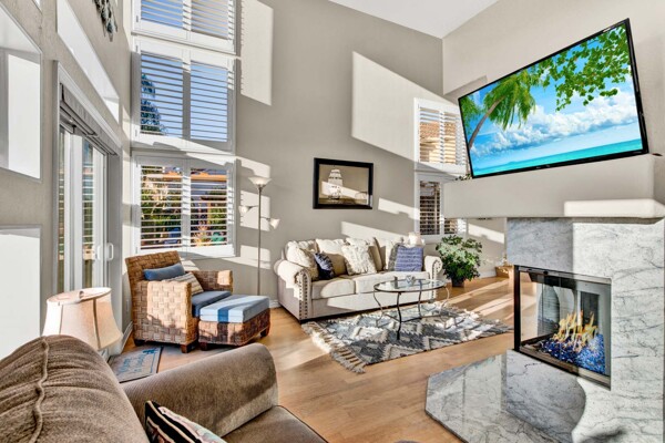 Professional pics coming 10-26 - Your chance to own one of Vilamoura's crown jewels is Now! Front row living with breathtaking, panoramic views of the Pacific Ocean, Catalina Island, Dana Point Harbor, and beyond. This property boasts one of the largest backyards in the tract, making it a true rarity. Step into your dream home, where every angle from the kitchen, living room, dining room, master bedroom, loft, and entire backyard offers mesmerizing vistas. Spanning 1, 550 sqft, this beautiful turnkey home features 2 bedrooms and a spacious loft that can easily become a 3rd bedroom. 2.5 bathrooms, a 2-car direct access garage, and central AC. Your chef's kitchen is a culinary masterpiece with GE Profile stainless steel appliances, custom upgraded cabinetry, granite countertops, and a farmhouse sink with a touch-activated faucet. The dining room is open to the kitchen and offers countertop seating. The living room impresses with approximately 20 ft ceilings and an abundance of natural light streaming in from the numerous windows and dual sliding glass doors. and wood floors Enjoy dual wine fridges and upgraded gas fireplace in this inviting space. Upstairs, a huge loft or could be converted into a 3rd room. The primary suite is a luxurious retreat with a gas fireplace, vaulted ceilings, a private balcony to savor ocean views, and an ensuite bathroom featuring dual closets, a dual sink custom vanity, a walk-in shower, soaking tub, and private toilet room. The secondary bedroom boasts vaulted ceilings and a mirrored closet, while the upstairs hallway bathroom includes a shower-tub combo with upgraded vanity. Downstairs, a half bath for guests and a laundry closet adjacent to the garage add convenience. Plantation shutters and upgraded window screens adorn the sliding glass doors, enhancing both style and function. Your ocean view backyard oasis will be the envy of all neighbors, as it sits on a double-sized lot perfect for entertaining. built-in gas fireplace, a pomegranate tree, and low-maintenance landscaping, built in bar are to sit and watch sunsets. Vilamoura has no Mello-Roos and the community offers a private pool and spa and nearby, you'll find the Rancho San Clemente Sports Park, hiking trails, Lifetime Fitness, multiple shopping centers, and the picturesque San Clemente Pier. Don't miss out on this rare opportunity to live the ultimate coastal lifestyle!