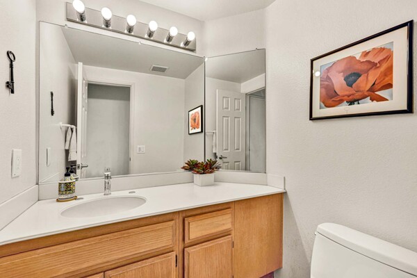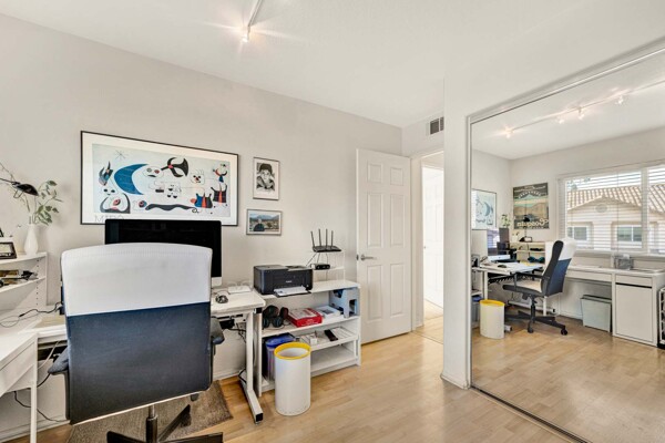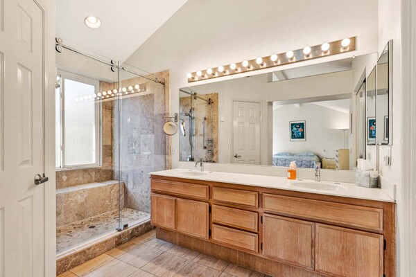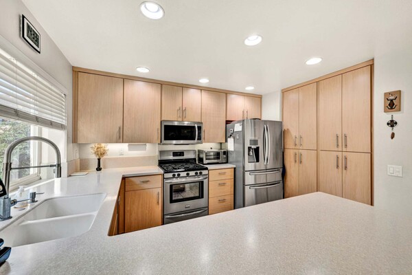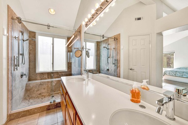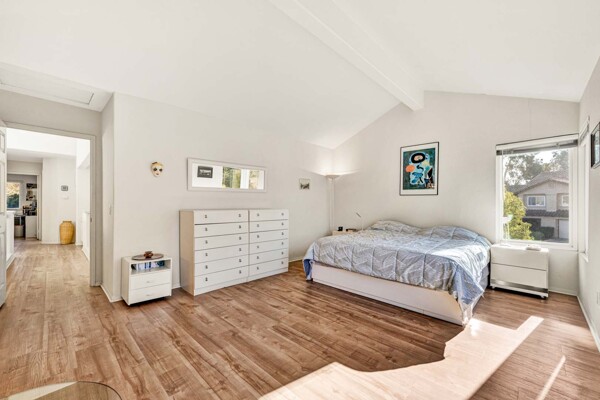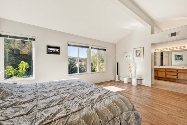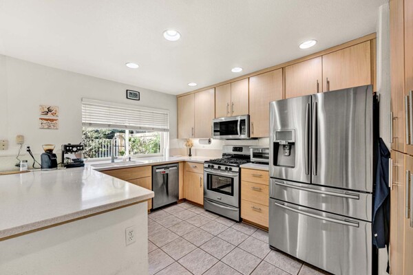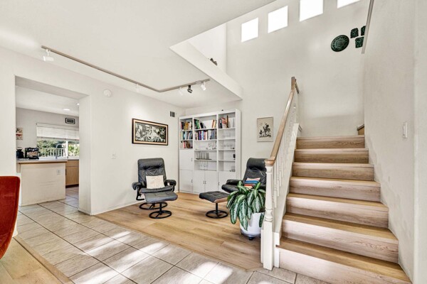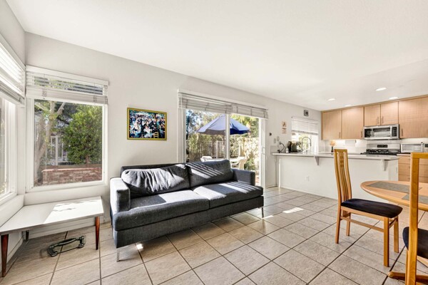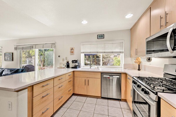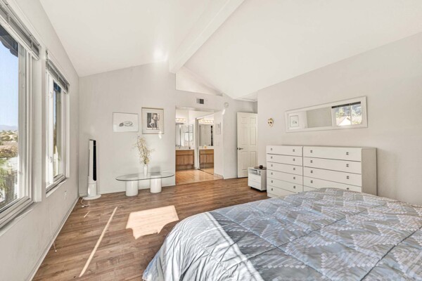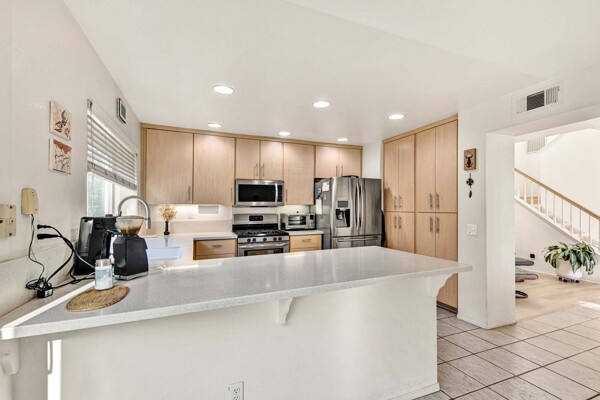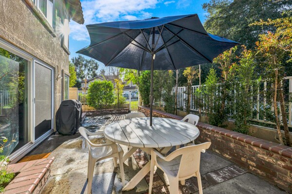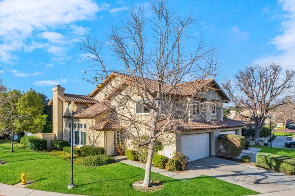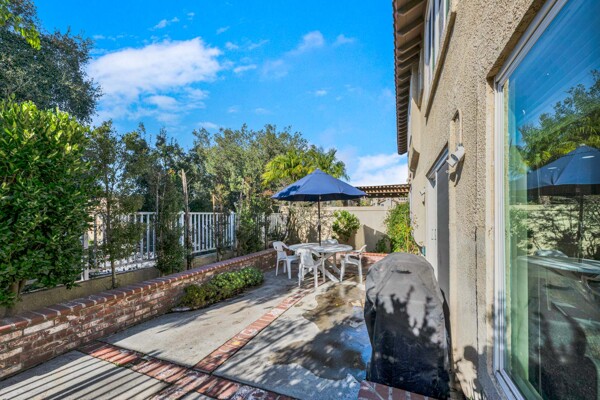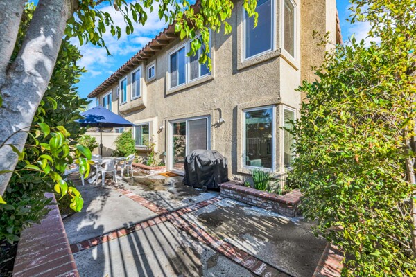 Welcome to your dream home in the coveted Tierra Linda Community! This exquisite end unit, nestled in a serene cul-de-sac, boasts a sprawling grass area on the left for your enjoyment. Step inside and be captivated by the light porcelain tile flooring that transitions seamlessly to light laminate floors, creating an open, airy atmosphere. Dual-paned windows and vaulted ceilings enhance the spacious living and dining rooms, while neutral custom paint adds a touch of elegance. The kitchen, a chef's delight, features light wood cabinets, and stunning Corian countertops, and sink. The family room is a cozy haven, complete with a dramatic tile fireplace. enter your private backyard oasis, with privacy and treetop views. The easy-care backyard includes a charming planter area, perfect for gardening enthusiasts. The downstairs half bath has whitewash cabinets, and white counters, and a large mirror. Upstairs, light laminate flooring continues. The bath at the top of the stairs mirrors the downstairs bath's chic design with whitewash cabinets, white counters, and tile floors. The massive master suite, with its treetop and wilderness views, is a tranquil retreat. The master bath is a luxurious haven, featuring a walk-in shower with travertine tile and a high-polish pebble stone floor, whitewash cabinets, white counters, and a spacious walk-in closet. A picturesque catwalk overlooks living room and leads to two additional rooms, each adorned with neutral paint, one with Carpet and the other with laminate flooring. The 2-car garage, along with a 2-car driveway, provides ample parking. Modern comforts abound with a new AC and heat pump. All homes in community fully re-piped in 2018, and new roofs and paint are coming. Nestled within vibrant Rancho Santa Margarita, voted the safest city in California in 2024, residents enjoy a community pool, nearby hiking and biking trails, and views of Tijeras Creek golf course. City amenities include beautiful parks, swimming pools, a beach club with a lagoon, BBQ and picnic areas, a lake walk, playgrounds, sports fields, tennis, pickleball, basketball, and volleyball courts. Additional features include a dog park, skate park, and hiking and biking trails just steps away. Distinguished schools, low taxes of 1.02%, and no Mello Roos complete this perfect package. Don't miss the chance to make this exceptional home yours!