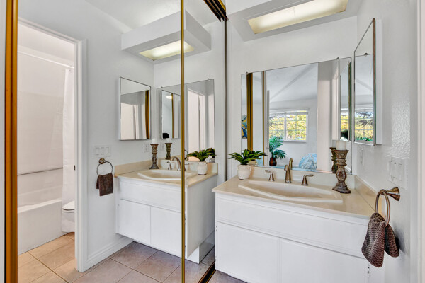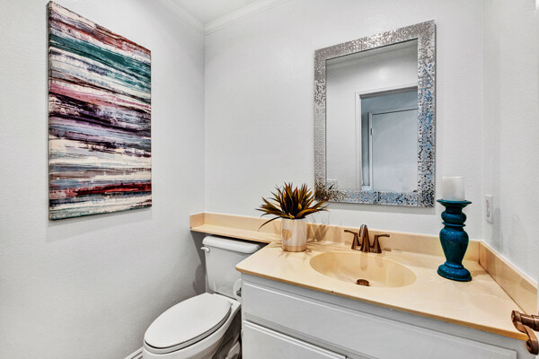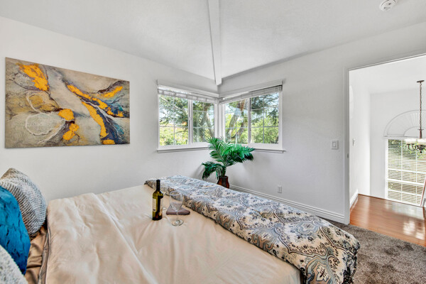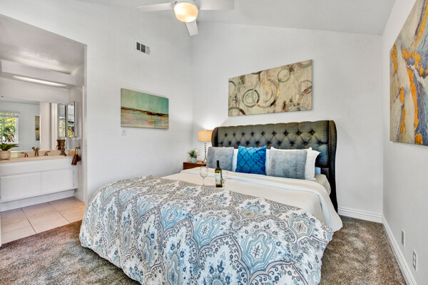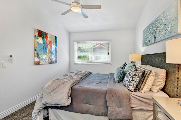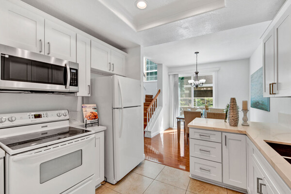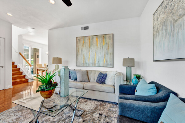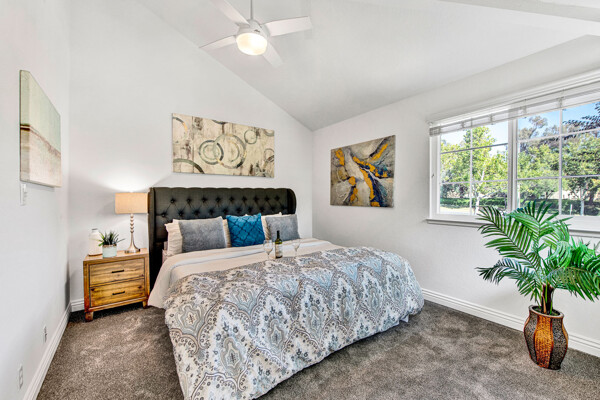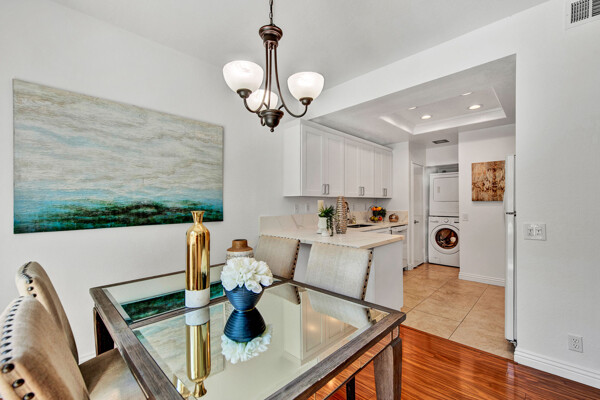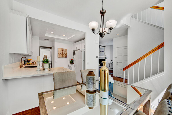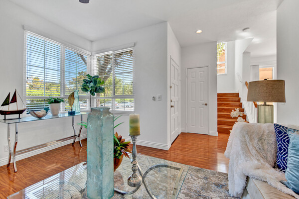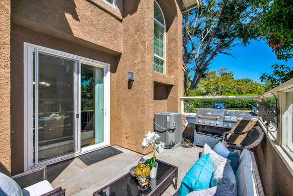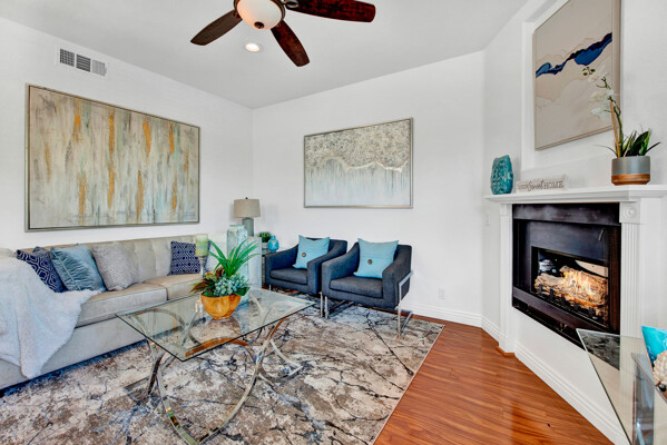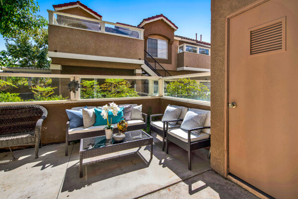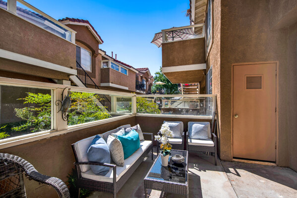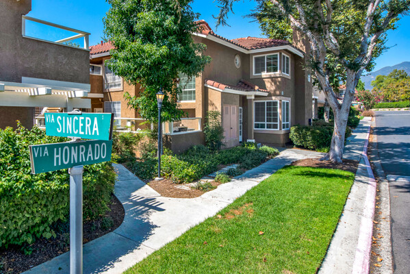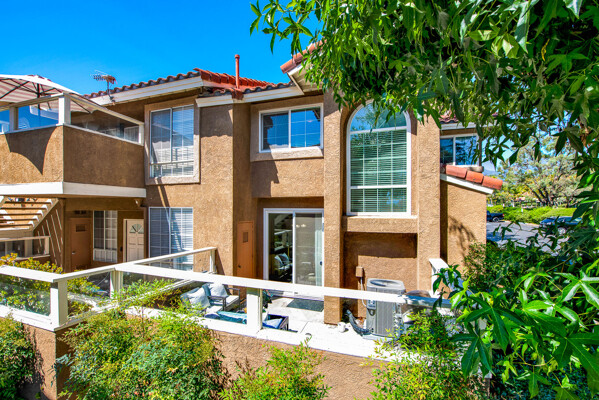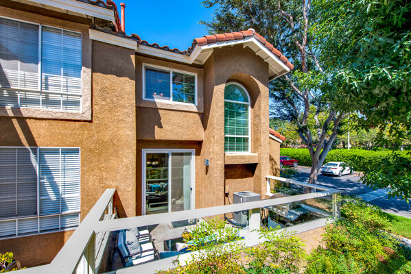 Amazing and rare, two Level townhome style End Unit in the sought after Mission Courts tract, no one above, and below you. Beautiful walnut toned Laminate flooring greets you as you walk in, Freshly painted light and bright, and with New Dual paned windows throughout! Kitchen has been remodeled with white cabinets and White quartz countertops, all appliances in kitchen stay including refrigerator. Stove has an electric cooktop, Stackable washer and dryer closet conveniently located at the back of kitchen. Neutral Tile Flooring in kitchen and downstairs bath, with updated mirror. Spacious living room with walnut laminate flooring, Cozy Fireplace, and ceiling fan. Head upstairs to Master bedroom, with fresh neutral carpet, paint and ceiling fan. Remodeled Master shower with beautiful custom tile and glass tile accents. Second Bedroom also has new carpet, paint, and ceiling fan. Second bedroom has its own bathroom with a shower tub combo, and new fixtures. brand new AC installed. Spacious enclosed Patio area to enjoy BBQ's and family gatherings!! Detached garage just around the corner, with tons of parking in front of home. Nestled within a vibrant small town community, residents can take advantage of a delightful pool, and nearby hiking/biking trails, for an outdoor friendly lifestyle. There are an array of city amenities including beautiful parks, heated swimming pools, beach club with a stunning lagoon with BBQ and picnic area. playgrounds, sports courts (tennis, pickleball, basketball, and volleyball), This townhouse blends comfort, style, and convenience—making it a perfect choice for those seeking a slice of the Californian dream. Low Taxes, No Mello Roos. Rancho voted the second safest city in California for 2 years in a row.