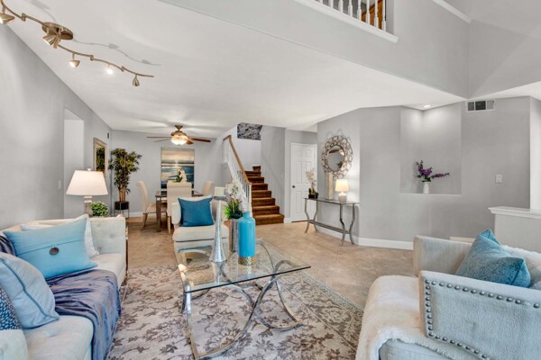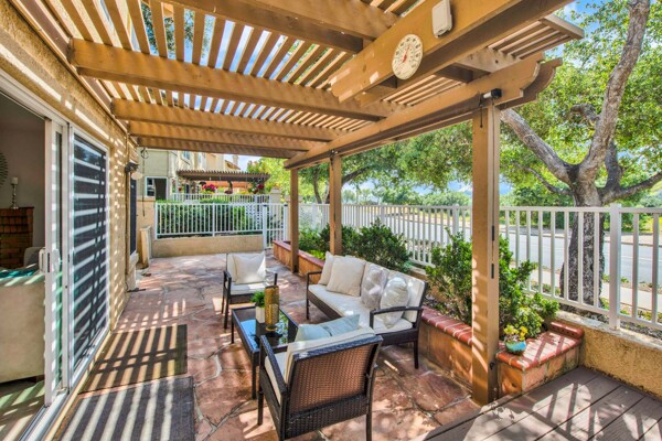 Largest model in the highly desirable Tierra Linda community With a huge loft addition. Panoramic Views of the Arroyo Trabuco preserve, and Steps away from Tijeras creek golf course. This turnkey end-unit townhome has a two car Driveway, located on a Single Loaded Street with tons of Parking. Step into the expansive living room, with fresh custom paint and dual paned windows throughout, Large travertine style tile flooring. The Remodeled kitchen features granite counters, Black Appliances, and Stainless Steel Refrigerator included. The family room off of the kitchen is perfect for entertaining guests with a cozy fireplace to keep you warm. Head out through new sliding door to an enclosed patio with Patio cover, slate stone flooring, raised Planter area, and a raised wooden area ready for your patio set so you can Entertain and have a glass of wine and see fantastic sunsets. The downstairs bath has beautiful Lavender accent wall and upgraded vanity, mirror, and lighting. Walk upstairs to a Huge Loft area, with walnut toned laminate flooring, that can be used as a work area, or extra play area. Huge master bedroom with fresh custom paint, and panoramic wilderness views. The master bath has dual sinks, Porcelain tile flooring and a large walk-in shower, with beautiful grey tile design. Large walk-in Master Closet. Two other good sized rooms with fresh paint, and mirrored wardrobe. The bath at the top of the stairs has a shower / tub combo. Home has New AC/ Heater. Large two-car garage is perfect for parking your vehicles. Nestled within a vibrant community voted safest city in California in 2023. Residents can take advantage of a delightful community pool, and nearby hiking/biking trails, for an outdoor friendly lifestyle. Golf enthusiasts will appreciate the proximity to Tijeras Creek golf course. There are an array of city amenities including city events, beautiful parks, swimming pools, beach club with a stunning lagoon with BBQ and picnic area. Lake walk, playgrounds, sports fields, tennis, pickleball, basketball, and volleyball. Other amenities include Dog Park, Skate Park, and hiking and biking trails steps away. This townhouse blends comfort, style, and convenience—making it a perfect choice. Distinguished Schools, Low Taxes, No Mello Roos.